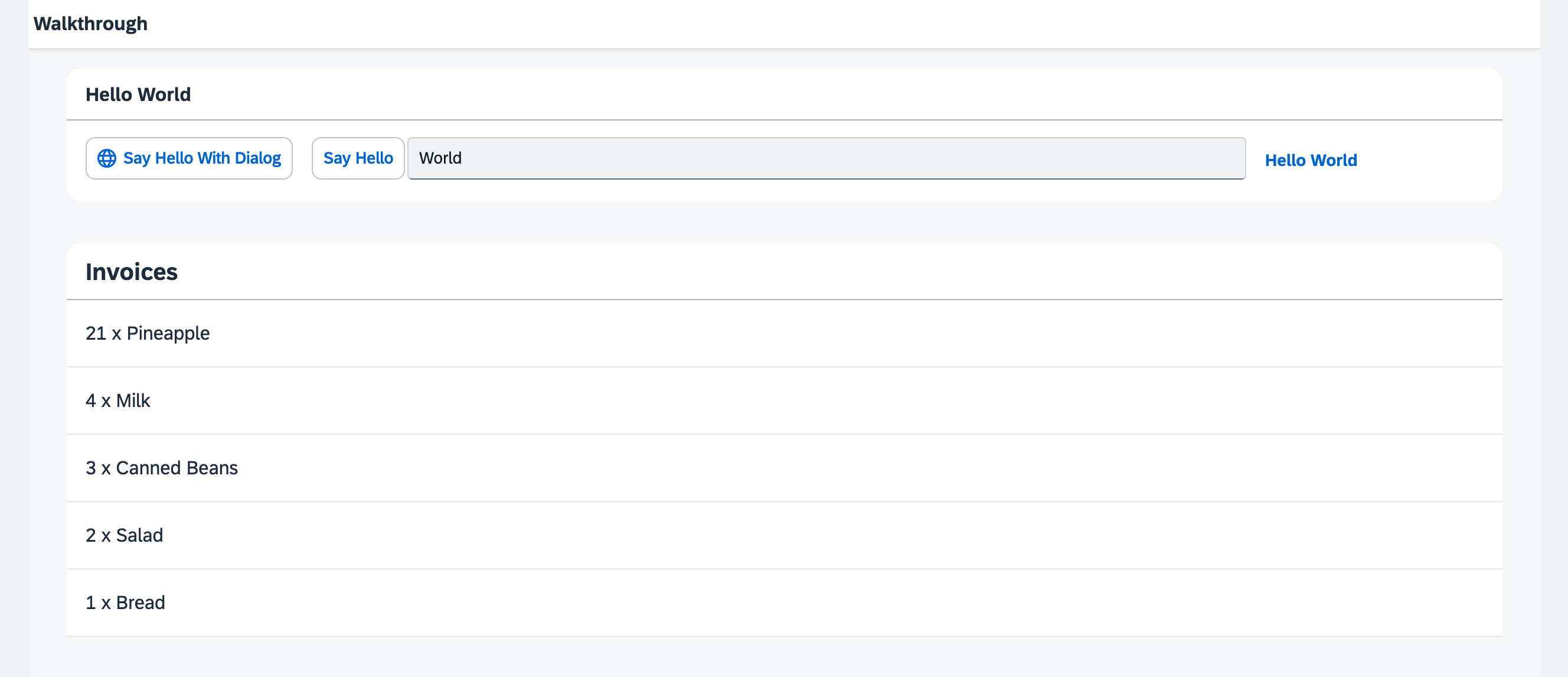 Now that we have established a good structure for our app, it’s time to add some more functionality. We start exploring more features of data binding by adding some invoice data in JSON format that we display in a list below the panel.